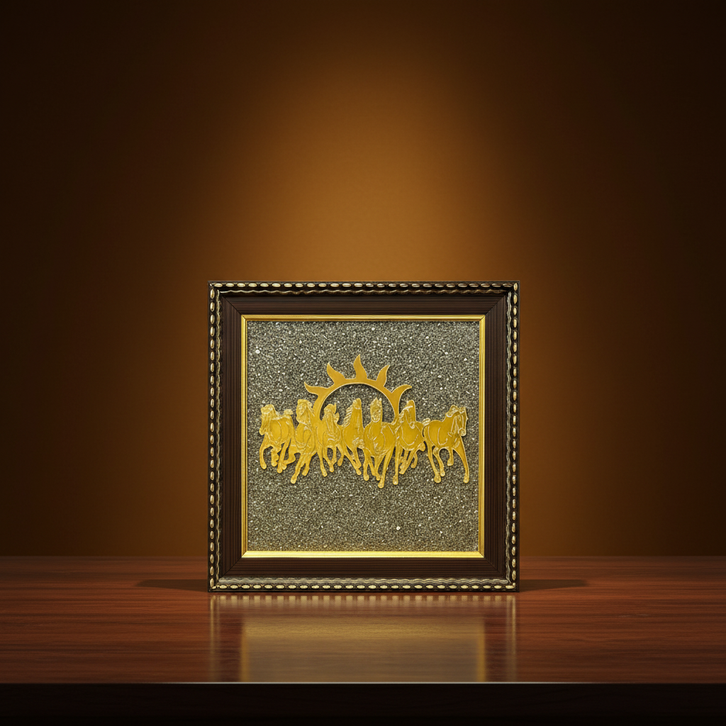 7 Horses on Raw Pyrite Frame